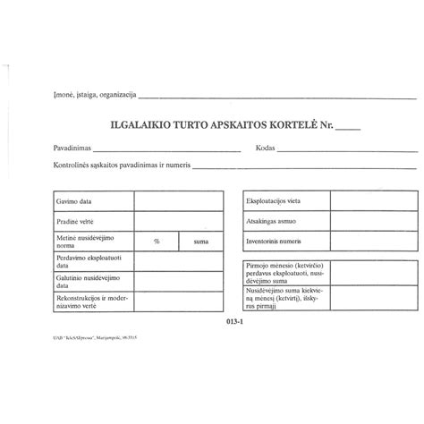 Ilgalaikio turto kortelės pavyzdys