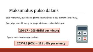 Svarbu žinoti: Jei pulsas nuolat yra žemesnis nei 50 ar viršija 100 dūžių per minutę ramybės metu, rekomenduojama kreiptis į gydytoją. Tai gali rodyti širdies ar endokrininės sistemos sutrikimus.
