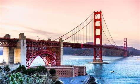 Aukso vartų tiltas San Franciske - vienas iš Kalifornijos simbolių, lengvai pasiekiamas automobiliu.