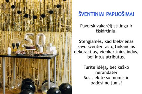 - Gimtadieniai: Spalvingi balionų puokštės, arkos ir figūros.