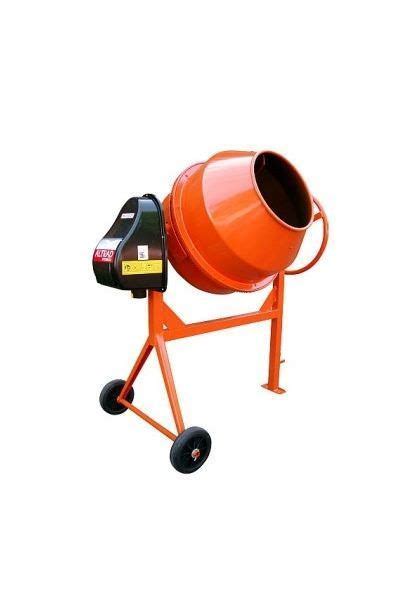 - Elektrinis 130 litrų cemento maišytuvas: paprastos plieno konstrukcijos, priežiūros nereikalaujantis aparatas. Būgnas sukasi 360 laipsnių kampu apie 28-30 apsisukimų per minutę. Betono skiedinio maišymo mašina labai lengvai nešiojama dviejų ratų pagalba ir turi rankeną būgnui išversti maišomą masę, rankiniu būdu.