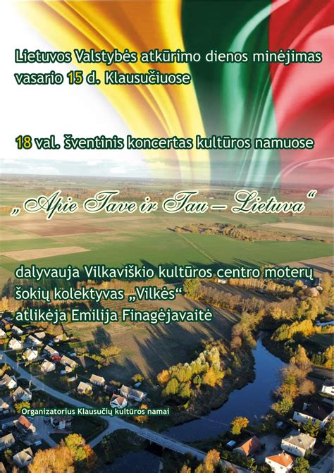 - 15 val. Koncertas „Tėvynės spalvos“ Šiaulių kultūros centro Didžiojoje koncertų salėje. Dalyvauja Šiaulių kultūros centro kolektyvai ir svečiai.