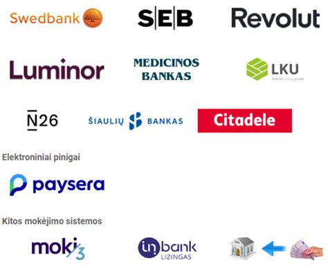 Padarius užsakymą el. pabaigoje būsite nukreipti į „SEB“ banko el. bankininkystės svetainę. pabaigoje būsite nukreipti į „Swedbank“ banko el. bankininkystės svetainę. pabaigoje būsite nukreipti į „Luminor“ banko el. bankininkystės svetainę. pabaigoje būsite nukreipti į „Citadele“ banko el. bankininkystės svetainę. pabaigoje būsite nukreipti į „Medicinos Bankas“ banko el. bankininkystės svetainę. pabaigoje būsite nukreipti į „Šiaulių bankas“ banko el. bankininkystės svetainę. pabaigoje būsite nukreipti į „Revolut“ banko el. bankininkystės svetainę.