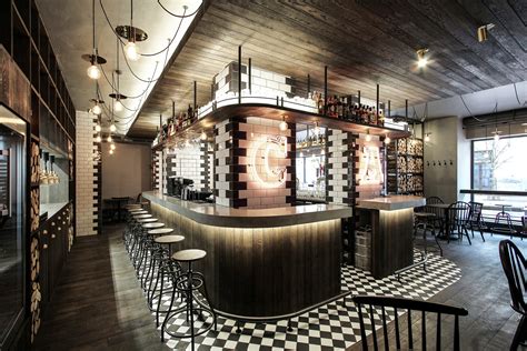 Iš lentelių suklijuota stalų stalviršių viršutinė dalis irgi tarsi atkartoja statinės dangtį. Sendinto ąžuolo grindų lentos, dengtos juodmedžio spalva. Ta pati spalva panaudota ir visiems medienos gaminiams. Erdvėje gausu juodų bei tamsiai pilkų detalių: tai ir juodmetalio konstrukcijos, ir dalinai panaudotas pilkų plytelių raštas, ir kabantys laidai, betoninis baro stalviršis, kėdės. Šiam monochrominiam spalvų žaidimui pagyvinti pasitelktas šviestuvų bei baro įrangos auksinis atspalvis. Šilumos griežtam interjerui suteikia lentynose ir specialiai pagamintose konstrukcijose sudėliotos skirtingų diametrų uosio trinkelės.