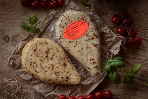 - Pomidorai: Prinokę, tvirti pomidorai, supjaustyti griežinėliais.