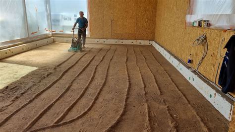 Jeigu šildymo vamzdeliai nemontuojami, ant armuotų grindų ploto pilamas ne mažesnis kaip 5 cm storio smėlbetonio sluoksnis. Jį galima pasiruošti statybvietėje, maišant plautą ar sijotą smėlį, cementą ir vandenį. Profesionalai naudoja fibro pluoštą, įvairius plastifikatorius, tarp jų ir greitinančius džiūvimą.
