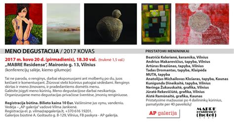 Meno degustacija - tai patentuotas AP galerijos pramoginis-pažintinis renginys, kurio metu yra stebima po keletą dešimties Lietuvos menininkų kūrinių. Meno kūriniai yra keičiami ant dviejų molbertų, juos trumpai pakomentuoja galerininkė Vilma Jankienė. Populiaraus ir pamėgto renginio metu žiūrovai skatinami atkreipti dėmesį į pačius svarbiausius dalykus meno kūriniuose - šviesą, spalvas, formas, idėjas, medžiagiškumą, atlikimo manierą ir panašiai. Komentarai trumpi ir... nenuobodūs!