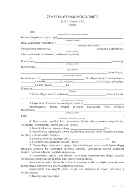 | Sutarties terminas | Šalių susitarimu | Iki 99 metų |