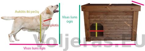 - Būdos aukštis turėtų būti toks, koks šuns ūgis, arba iki 15 proc. didesnis negu visas šuns ūgis.
