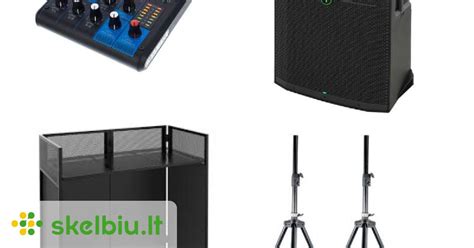 - Garso kolonėlės: Nuo kompaktiškų JBL Partybox 310 iki galingų profesionalių sistemų, tokių kaip dB Technologies Cromo 12+ ir Next Proaudio MH815.