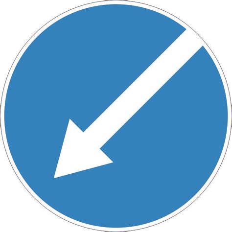 | Mėlynas apskritimas su baltu simboliu | Važiuoti tiesiai (Nr. ) | Nurodo privalomą važiavimo kryptį. |