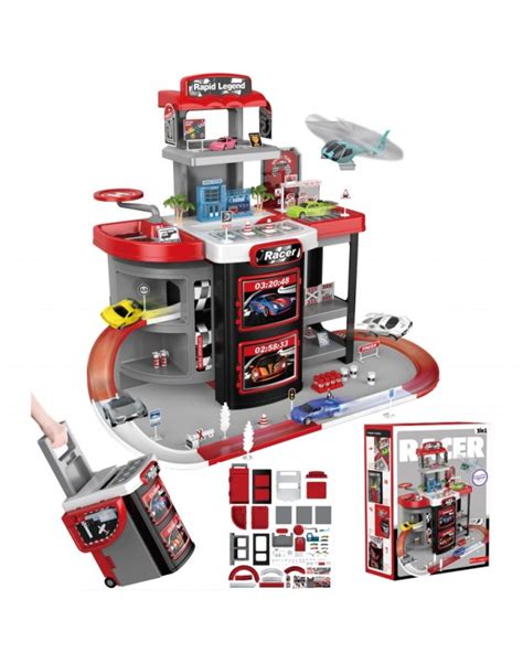 - Mobilumas: Po linksmos žaidimo sesijos pakanka nuimti visus nusileidimus, megafoną ir bokštą, kad garažas būtų sulankstytas į patogų lagaminą su rankena. Žaislas neužima daug vietos ir gali būti lengvai transportuojamas.