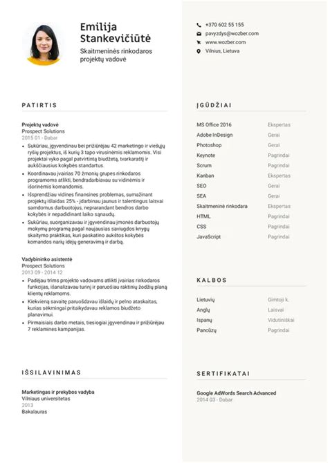 - Skyriklius: Skyriklių naudojimas gali padėti vizualiai atskirti skirtingas CV dalis.