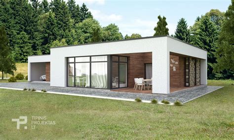 - Modernus vieno aukšto, plokščio stogo gyvenamasis namas su stogine, dvejais darbo kambariais, erdvia svetaine bei jaukia lauko terasa.