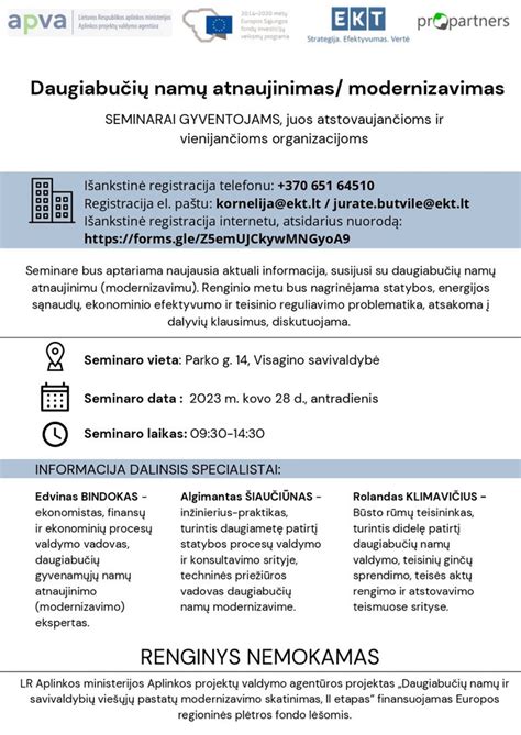 - Informacinis susitikimas su gyventojais: Namo administratorius organizuoja informacinio pobūdžio susitikimą su namo gyventojais. Susitikime pristatoma visa renovacijos programa, smulkiai aptariami visi ją sudarantys etapai, kompensacijos, paraiškos ir terminai. Atsakoma į gyventojams kilusius klausimus.