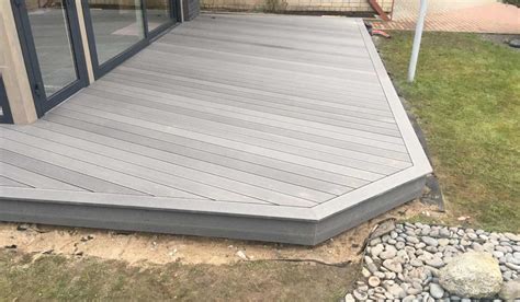 - Rekomenduojamas 2-5 cm tarpas tarp terasos konstrukcijos ir pastato sienos.