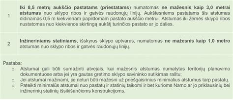 - Atstumai iki kaimyninių sklypų ir vandens telkinių: Laikykitės nustatytų atstumų iki kaimyninių sklypų ir vandens telkinių.
