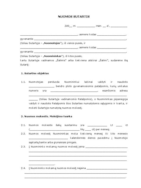 | Būtini elementai | Adresas, plotas, nuomos mokestis, mokėjimo terminai, komunaliniai mokesčiai |