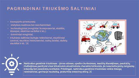 Garso galios lygis išreiškiamas decibelais, tai yra pagrindinė triukšmo šaltinio charakteristika. Triukšmo lygis užstatytose teritorijose priklauso nuo daugybės faktorių. Pagrindiniai triukšmo šaltiniai yra autotransporto srautai gatvėse, kurie tam tikrais atvejais duoda iki 80-82 % bendrojo triukšmo lygio miestų teritorijose.