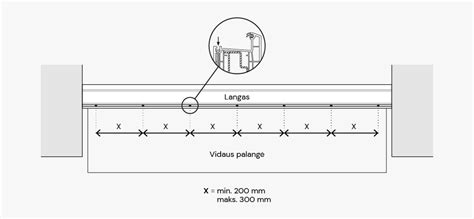- Kaladėlės (X) išdėstomos min 400 m - maks. 600 mm tarpais. Palangė ant kaladėlių turi gulėti stabiliai ir gerai priglusti prie apatinės lango rėmo dalies.