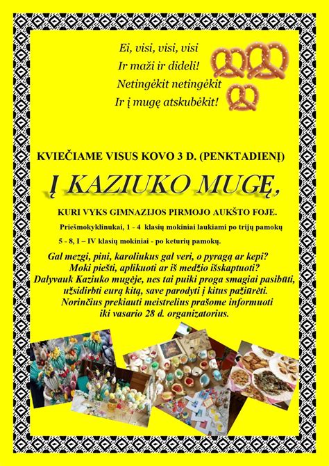Šiemet, kovo 3-ąją, vėl Svalios progimnazijoje šurmuliavo Kaziuko mugė. Kovo 3-ąją, penktadienį, 12 valandą, pirmo ir antro aukšto mokyklos koridoriai ir klasės pasikeitė: čia nusidriekė įvairiausiomis gėrybėmis nukrautų suolų eilės.