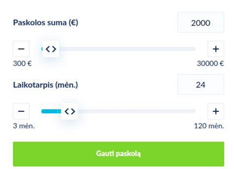 - Grąžinimo terminas: Galite rinktis paskolos grąžinimo terminą nuo 6 mėn.