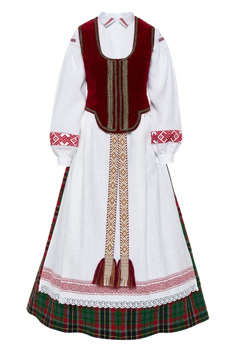 - Lietuvaitės kostiumas: palaidinė, liemenė, sijonas, prijuostė, galvos apdangalas.