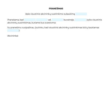 Štai pavyzdys kvietimo į susirinkimą: