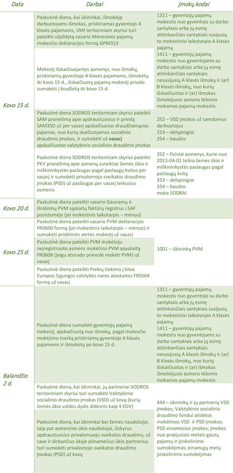 - 010 Apgyvendinimo paslaugų (kaimo turizmo paslaugos) teikimas: Leidžia teikti apgyvendinimo paslaugas kaimo vietovėse, kartu sudarant sąlygas maitinimo, poilsio, pramogų ar renginių organizavimo poreikiams tenkinti.